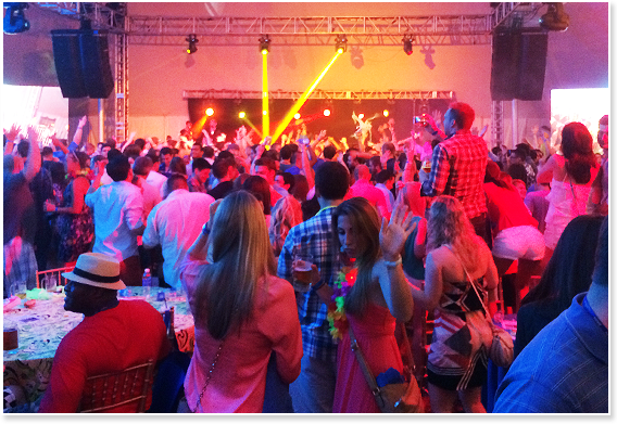 Underneath the Friday night Mug Night "Blue Tent" of Alumni Weekend 2014
