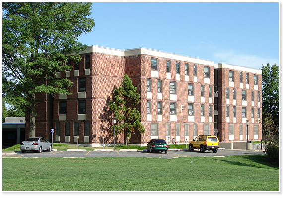 The Dickinson apartments. On the ground (lobby) floors, that connect A / B, C / D, and E / F. Typically they were occupied by the hall directors, and then there's one for the complex coordinator...but then I knew this guy -- regular student, my year -- who had one all to himself. He was allergic to everything, and that was the reason he scored it. Needed his own pad. I don’t think he had allergies to beer, though. Hmmmmm.