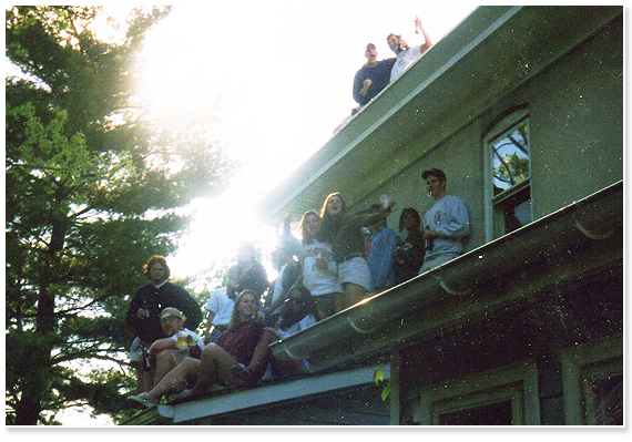 Back roof(s) of 65 East Cleveland during Shiftyfest, 1995. Courtesy of Charlie, UD '94